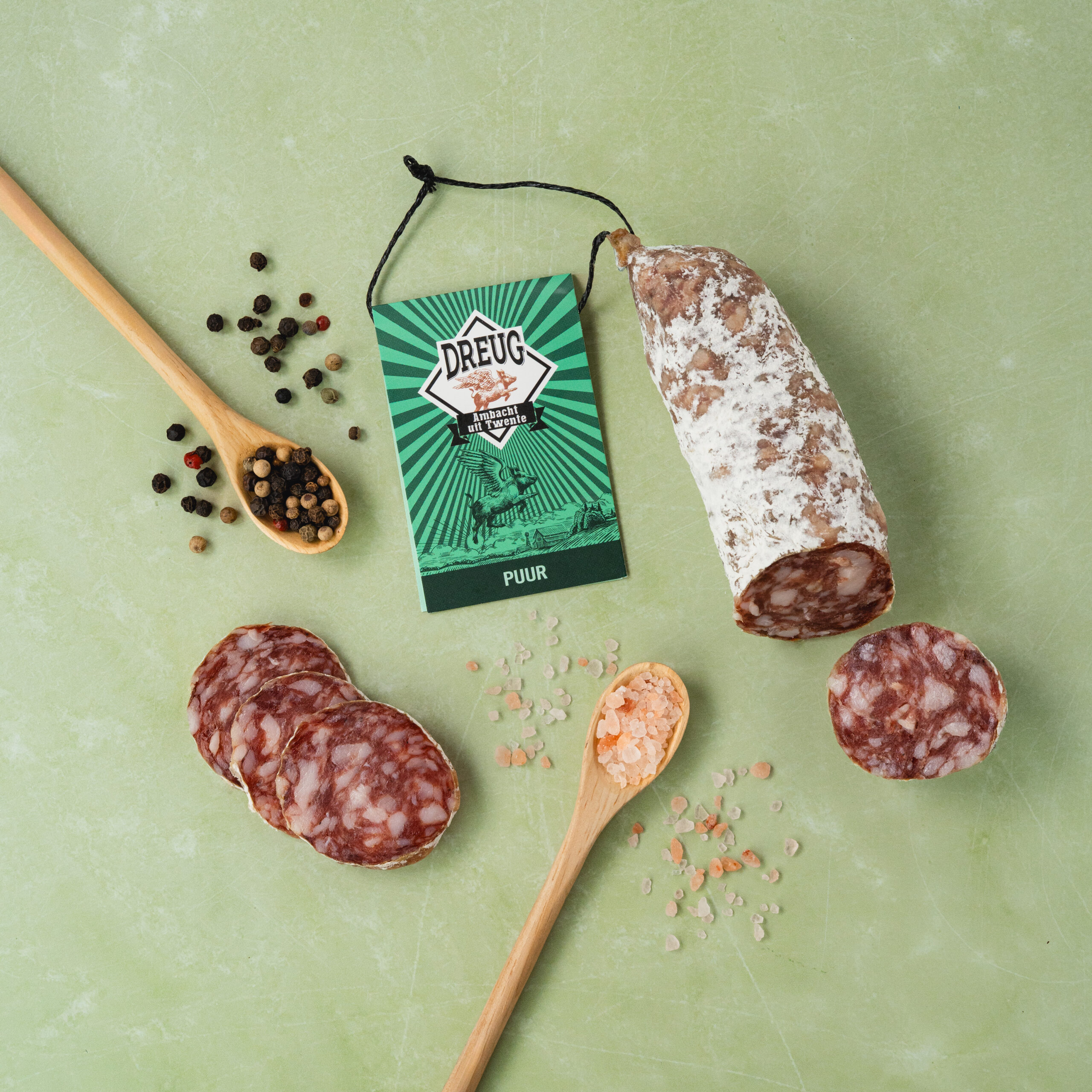 Varkensvlees (96%), zout, dextrose, kruiden, specerijen, startercultuur, conserveermiddel: natriumnitriet, varkensdarm